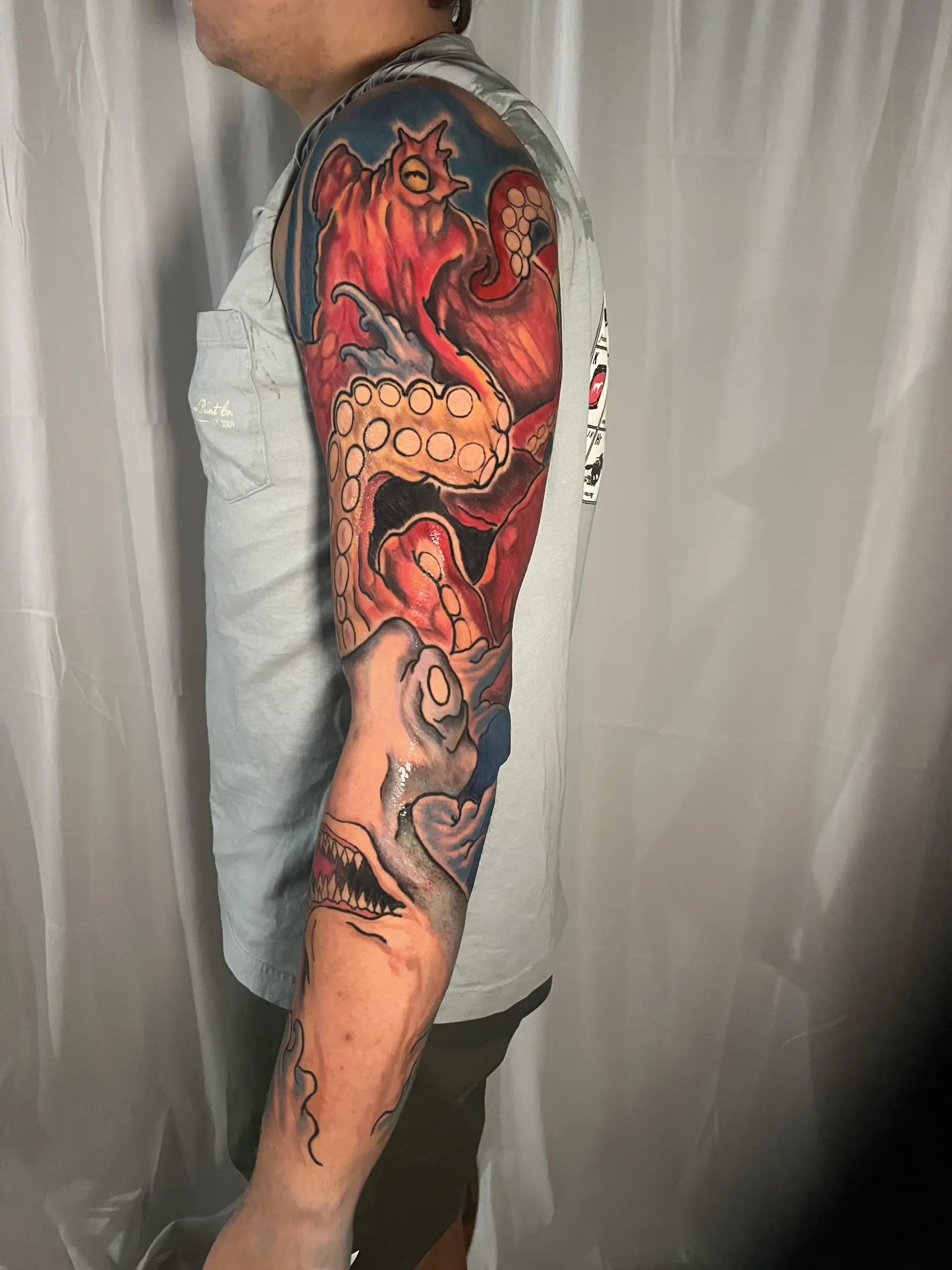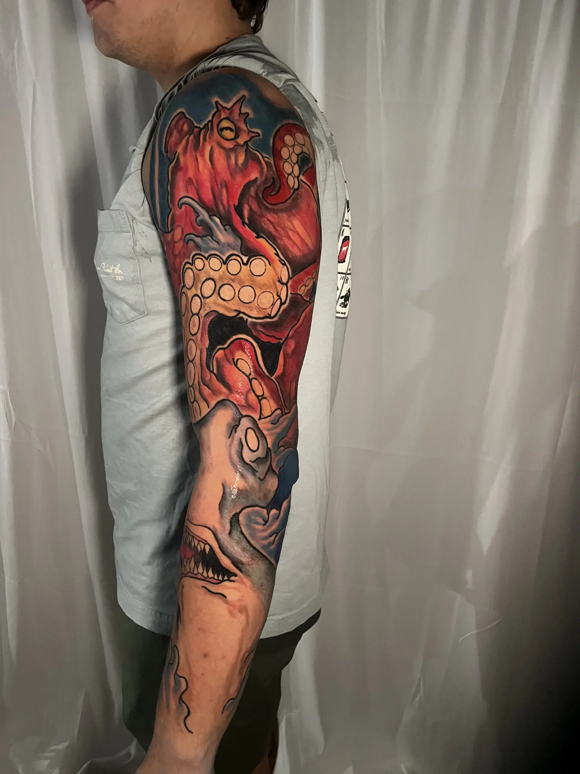 Hector’s passion for both Jiu-Jitsu and art seamlessly intertwines with his tattooing, offering clients not just a permanent masterpiece but a deeply enriching and knowledgeable experience. While he excels in a variety of styles—including Neotraditional and black-and-grey realism—his true expertise lies in Traditional Japanese tattooing. Each piece is meticulously crafted with precision and cultural authenticity, reflecting his deep understanding of both technique and history.